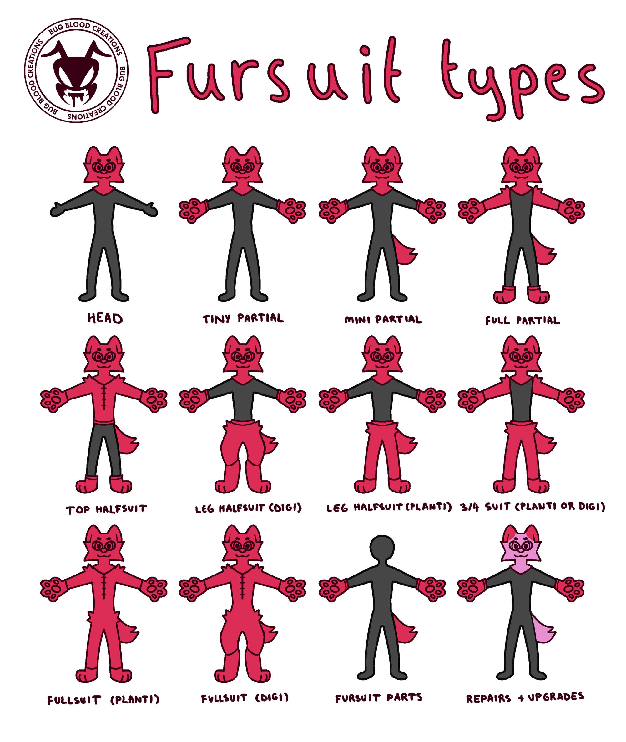 To get a fursuit quote, fill in this form and either email or DM me!1. Do you have a character, or do you want me to design one?:2. If you do have a character, please attach a full turnaround reference sheet:3. What type of fursuit do you want a quote for? (refer to chart on pricing page):